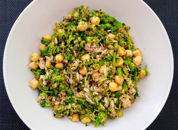 El toque final: Saca la bandeja cuando veas que los garbanzos están tostados y las puntas del brócoli un poco quemaditas (ahí está el sabor). Echa un chorrito de limón por encima antes de comer.